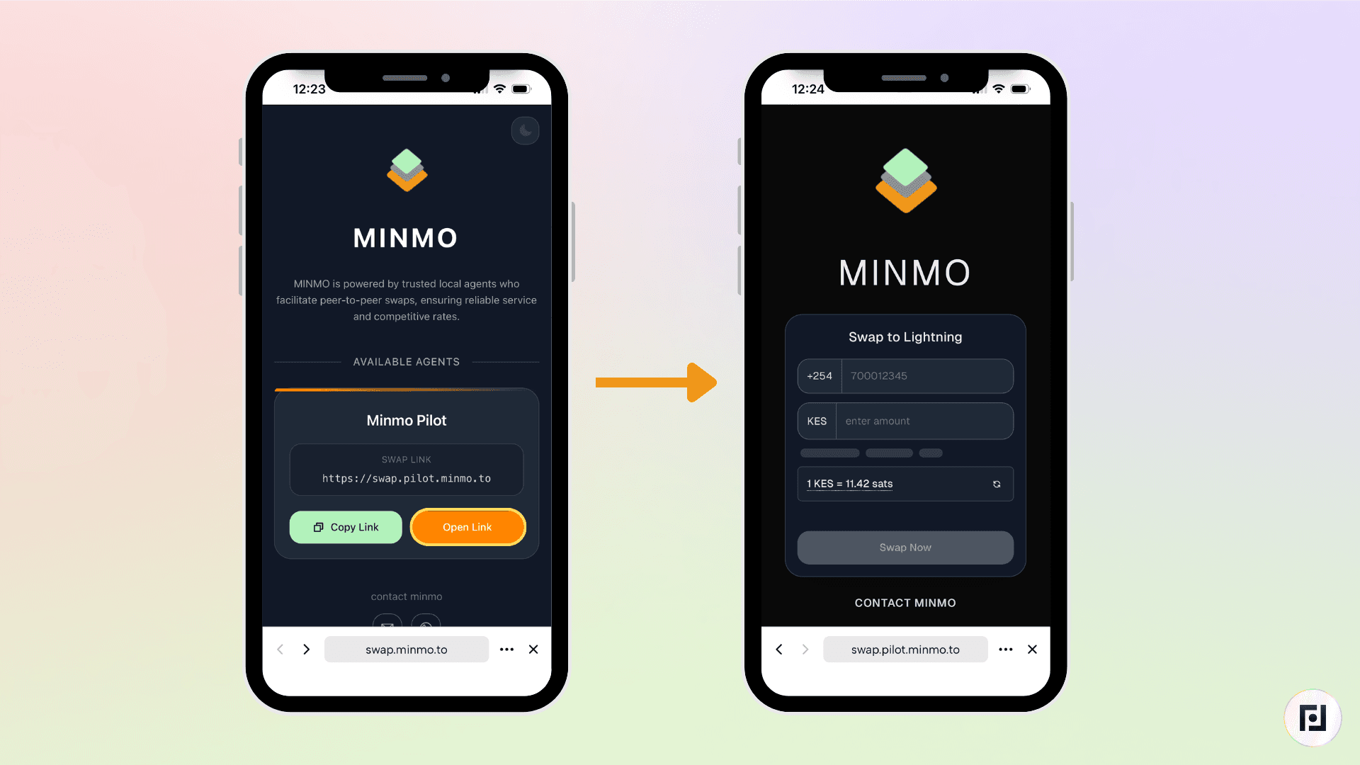 Minmo gives community members the infrastructure to run their own Bitcoin exchange service. Each agent gets a personal Swap Link, which is a URL that can be shared over WhatsApp, posted on social media, or embedded anywhere online. This same Swap Link can be added to your community on Fedi as a Mini App.