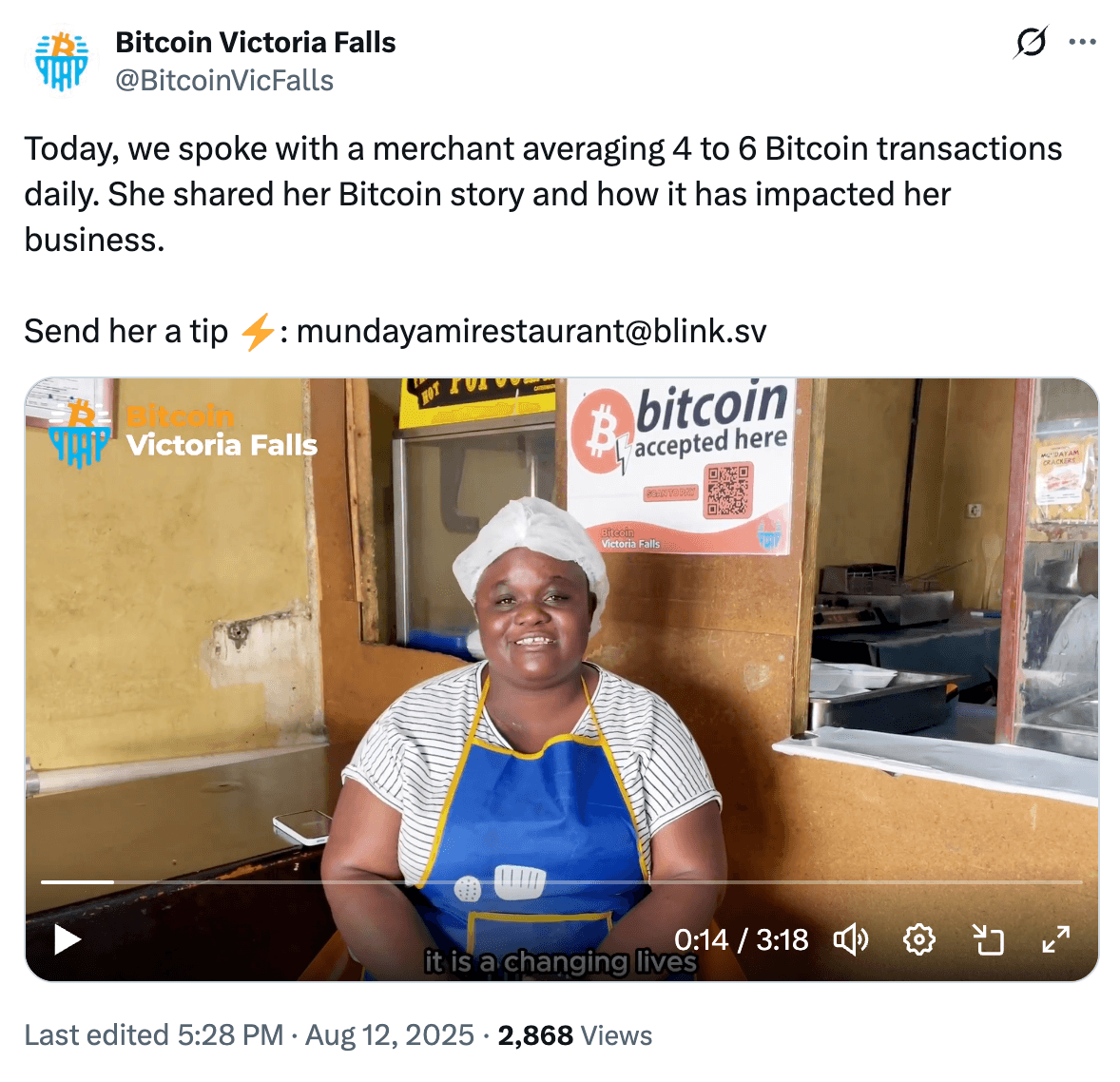 While 188 is an incredible number of merchants to onboard in a small city with only about 178,000 inhabitants, the number would have actually been higher if the sats Simwinga and Michael Pelete, the manager of Bitcoin Victoria Fall’s Merchant Adoption Program, hadn’t run dry by mid 2025.