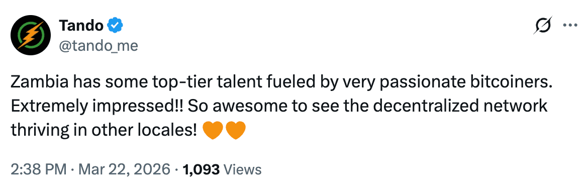 This lets Zambians who prefer to live on a Bitcoin standard do so regardless of whether those with whom they transact prefer to be paid in bitcoin or not.
