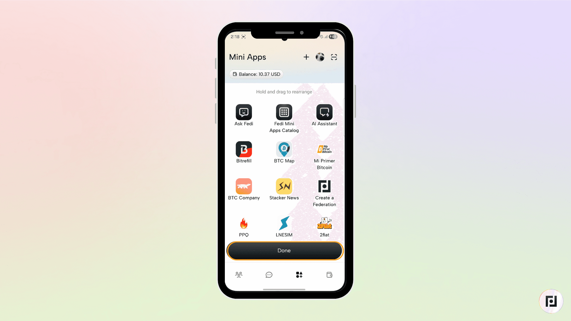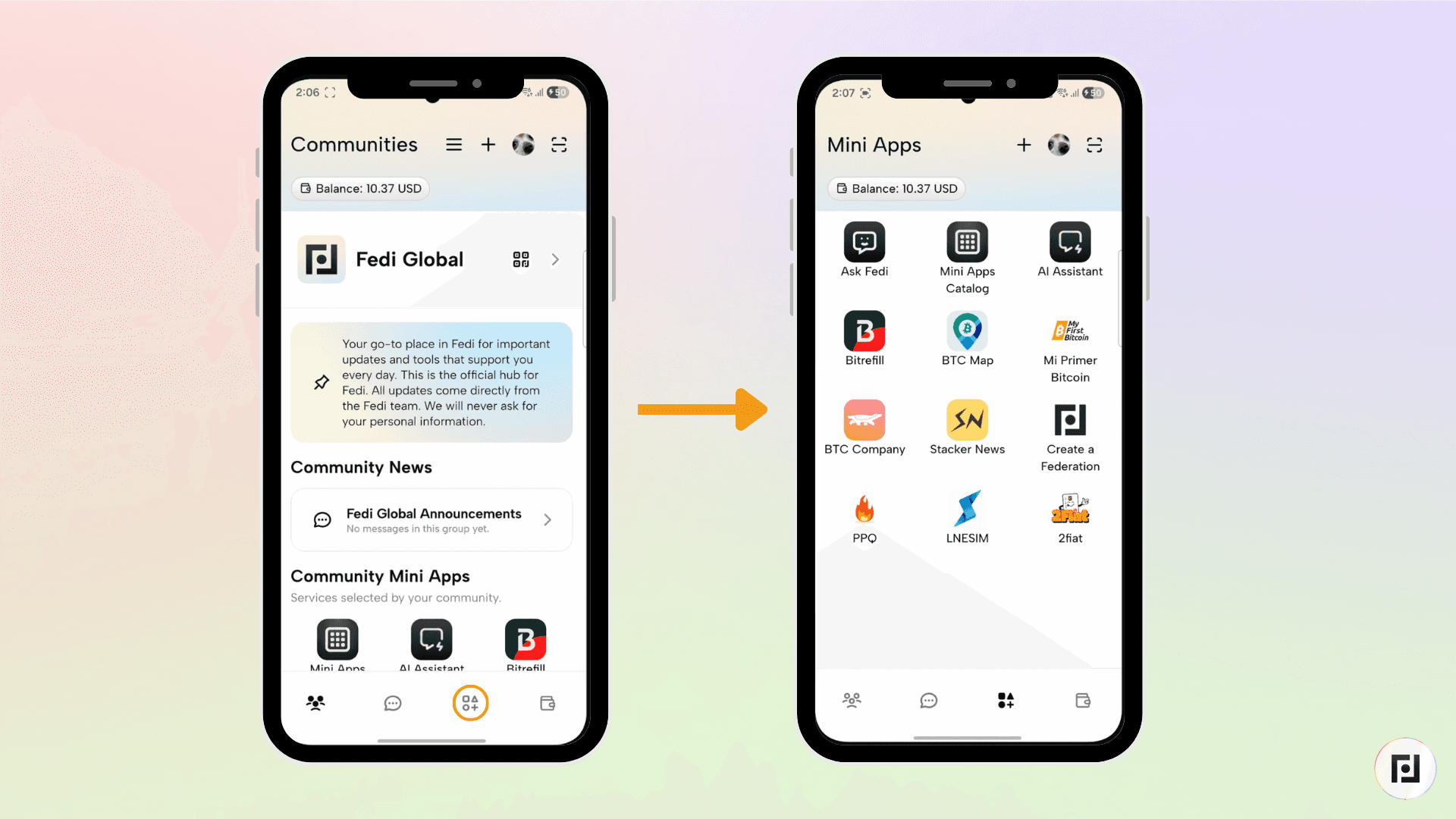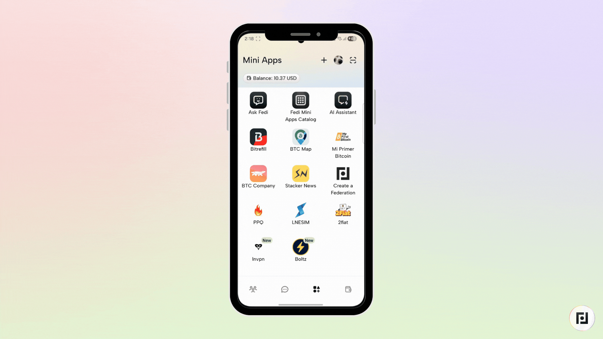 Upgrade or download Fedi today to customize your experience with Mini Apps.