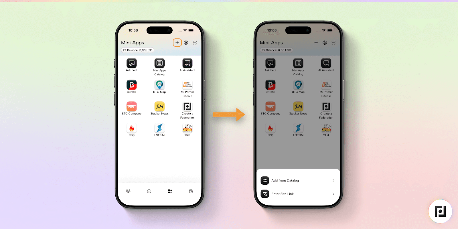 Step 1: Click on the “Mini Apps” button at the bottom of your Fedi screen.